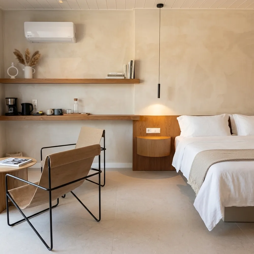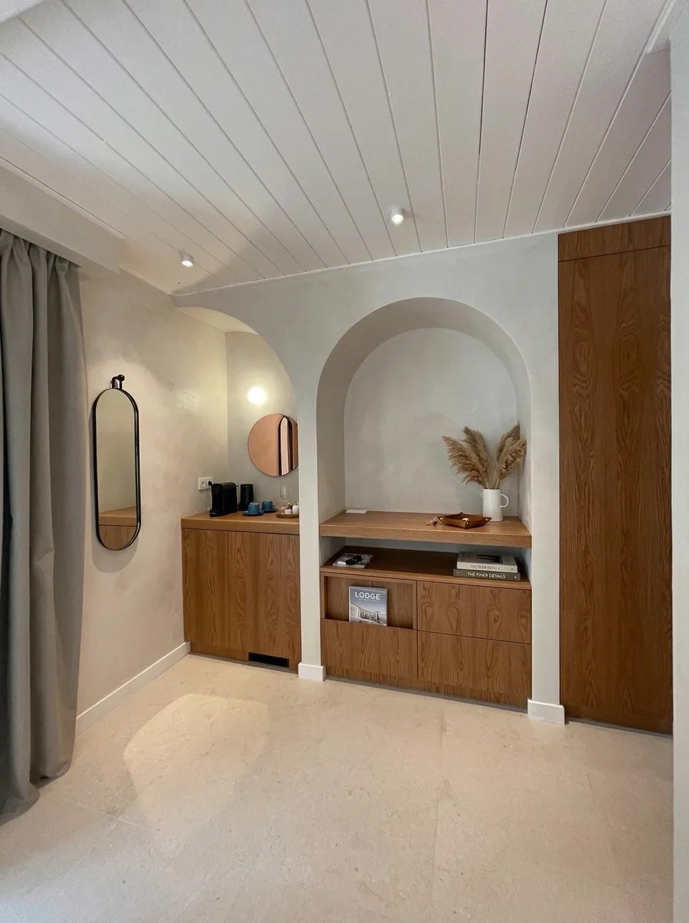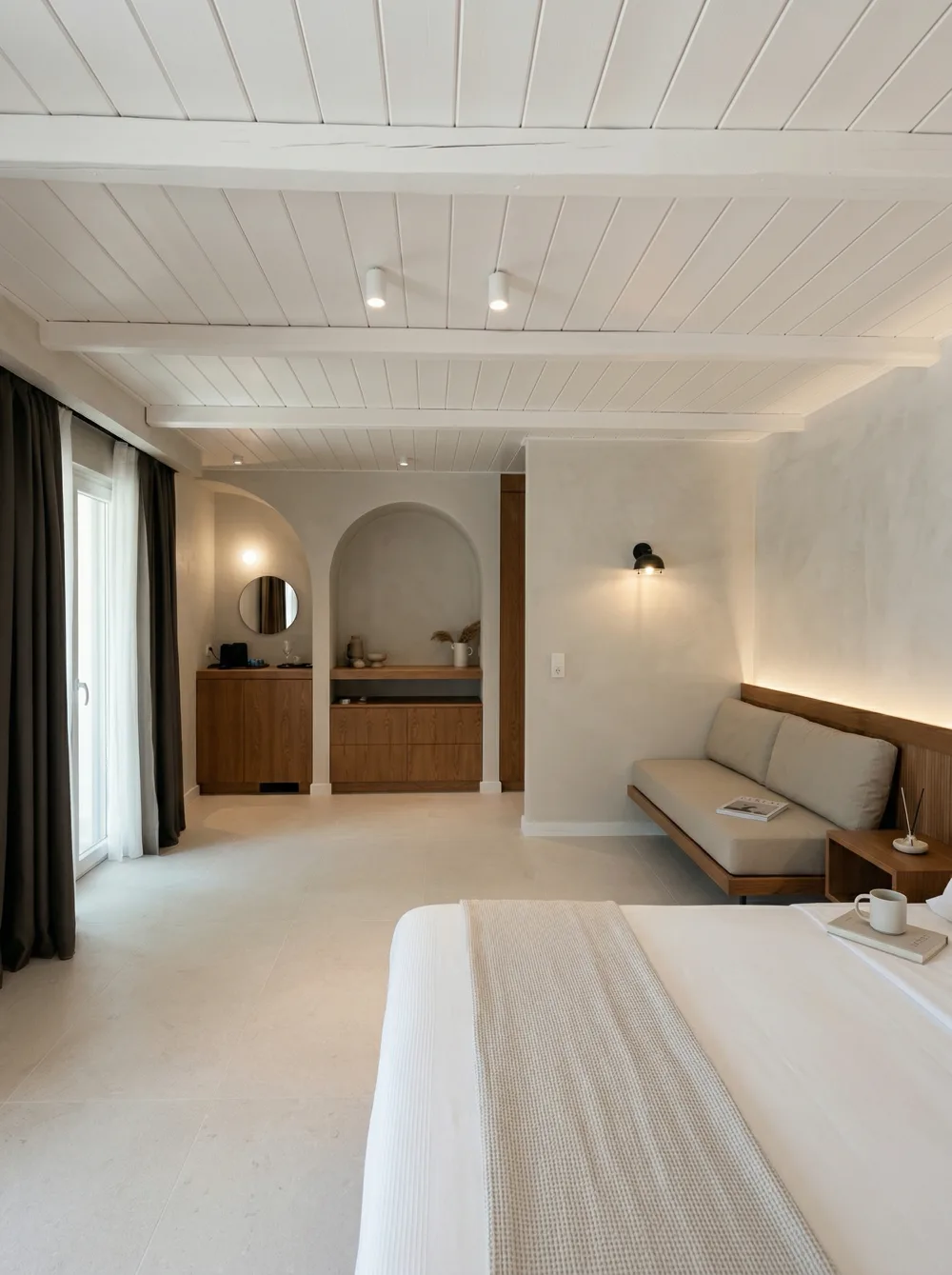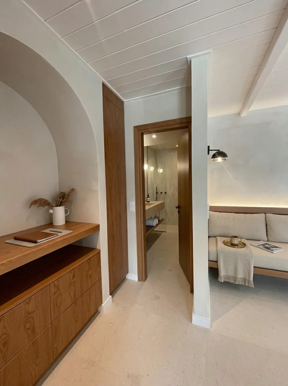 In our Executive rooms the use of oak has been offset by a choice of white and light taupe hues. Lime washed walls create a very pleasing and relaxing atmosphere. Furniture is contemporary in design, and attention to detail is evident from the cove lighting, the decorative arches, the comfortable armchairs and couches, and ultra-modern bathroom fixtures. These delightful very spacious rooms have furnished verandas with courtyard views.